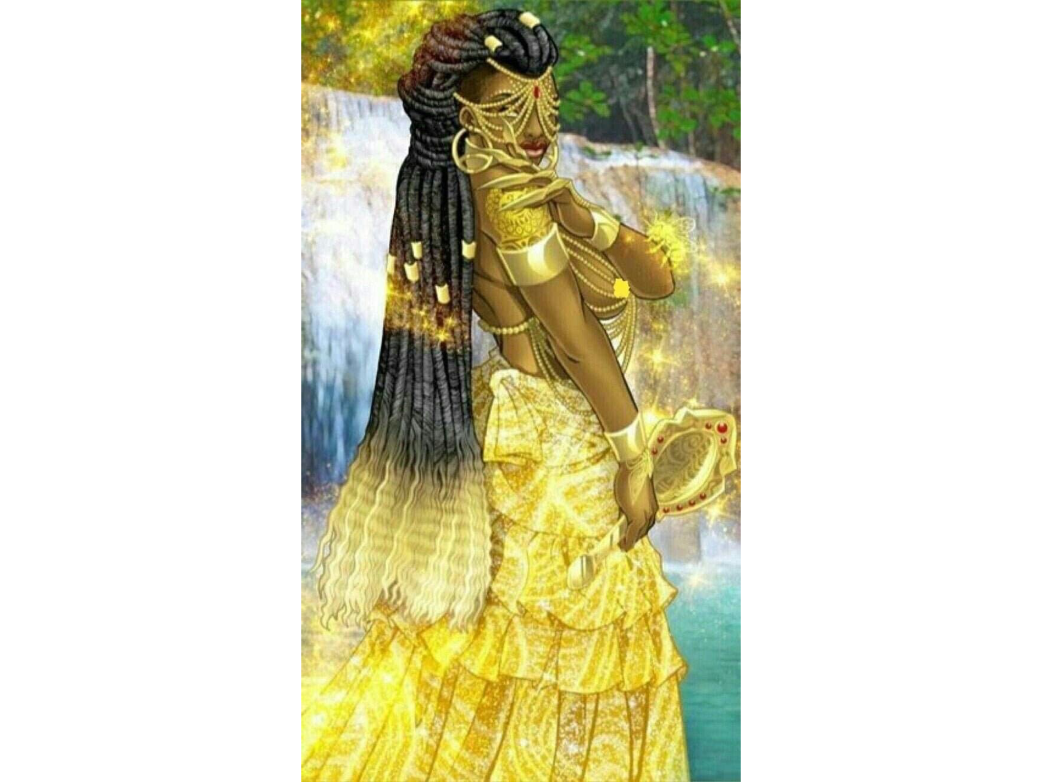 Oshún is a revered Òrìṣà of the Yoruba people, associated with rivers, creation, fertility, wealth, and survival. Proud, perceptive, and exacting, Oshún governs beauty, desire, and abundance, yet withdraws her gifts when disrespected. In Yoruba lore, when Oshún retreats or is driven away through conflict or rejection, harmony on Earth unravels and unrest follows among humans and spirits alike. Balance returns only with her presence.