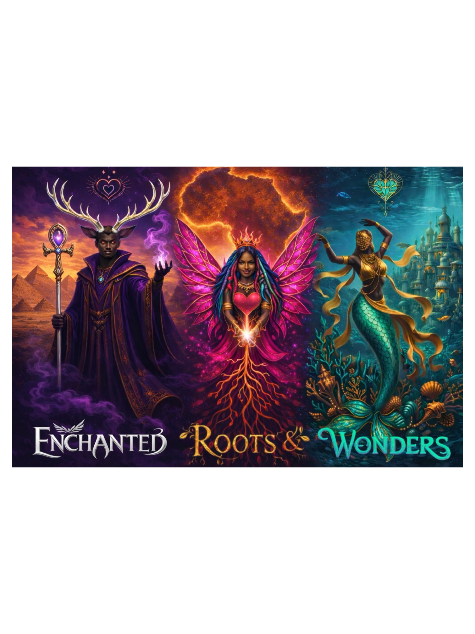 Every realm, name, and figure is created through research ~ rooted in African folklore, spiritual systems, history, and myth ~ then woven together with original storytelling. These are not invented names pulled from thin air. They are chosen with care, studied for meaning, and shaped by the cultures and legacies they echo.
